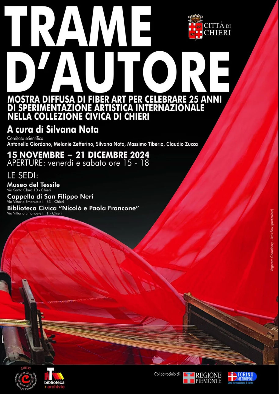 Piccolo Formato Fiber-Art Italiana Genova 1991 – Castellamonte 2016, a textile exhibition curated by Sandra Baruzzi, Loredana Seregni and Roberta Chioni, will be inaugurated on 5 November 2016 at Cantiere delle Arti of Castellamonte, near Turin. The exhibition will bring together works shown in 1991 at the Galleria Il Punto of Genoa, in the first Italian exhibition of minitextiles curated by Paulette Peroni, and recent works by the same artists, who will also introduce a number of young artists and their own works: 29 artists will be present in all. I will be there with my old piece “Scherzo” and two specially-created works, “Ciao Itten” and “Foresta per Roberta”.